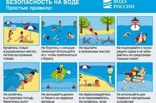 С наступлением долгожданного лета сотни людей устремляются на отдых к водоемам. Вода — добрый друг и союзник человека, помогающий получить максимум удовольствия от отдыха и укрепить здоровье. Но в то же время она не терпит легкомысленности и может являться источником повышенной опасности. Каждый человек должен знать элементарные правила безопасности на воде. Желательно купаться только на оборудованных пляжах, где есть все средства для спасения и оказания первой помощи. В незнакомых водоемах дно может нести опасность в виде разбитых стекол, коряг, металлических прутов и прочего мусора. Не заплывать за буйки — шансы на спасение резко уменьшаются, если человек находится далеко от берега. Запрещаются прыжки в воду с лодок, катеров, пирсов и прочих объектов, не приспособленных для этих целей. Это может стоить вашей жизни.