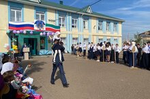 С началом учебного года школьников, педагогов и родителей поздравили директор школы Нургалиев Р.Р. и почетные гости праздника, которые вручили первоклассникам подарки.