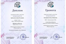 Ученица 7 класса Ариткулова А. участвовала в Международном конкурсе по физике и была награждена Дипломом (2 место). Молодец!