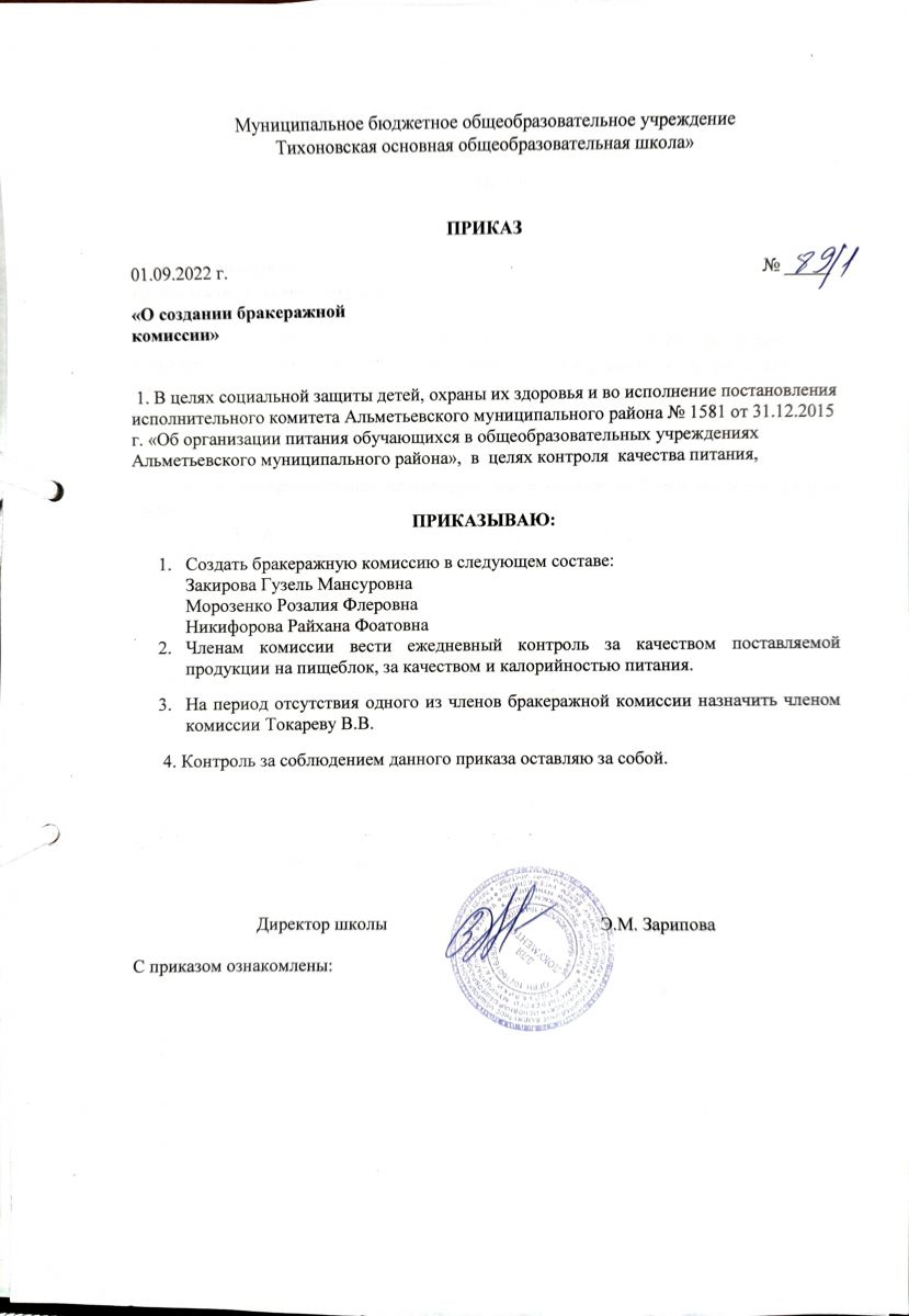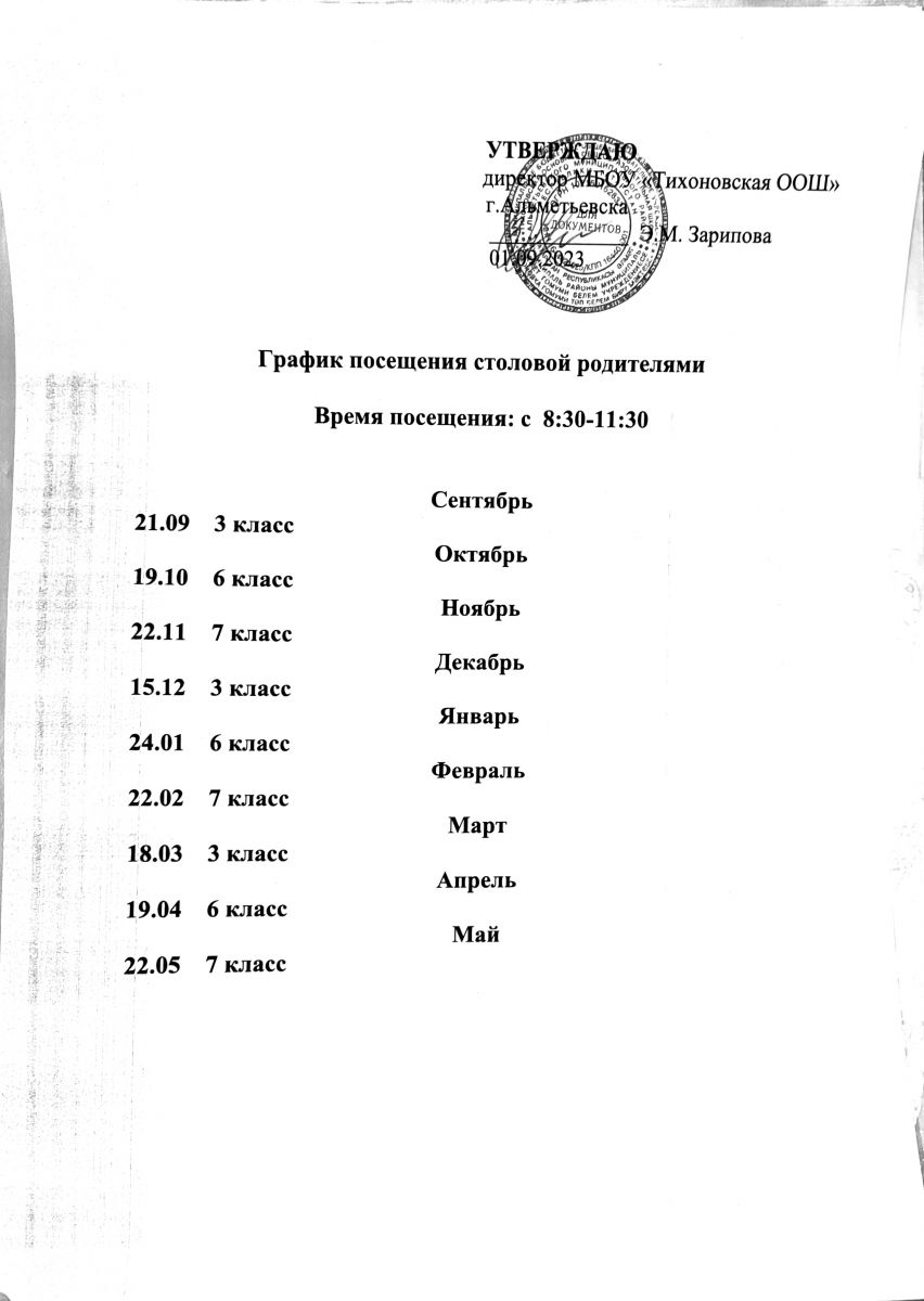 Документы по организации питания в МБОУ "Тихоновская ООШ":