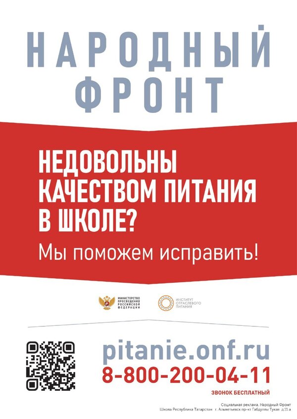 Согласно поручению Президента Российской Федерации В.В. Путина с 1 сентября 2020 года в школах организовано бесплатное горячее питание для обучающихся с 1 по 4 классы. Меню рекомендовано МО и Н РТ, согласовано Роспотребнадзором РТ. Ежедневно включены салаты либо свежие овощи и фрукты, имеется разнообразие мясных блюд.