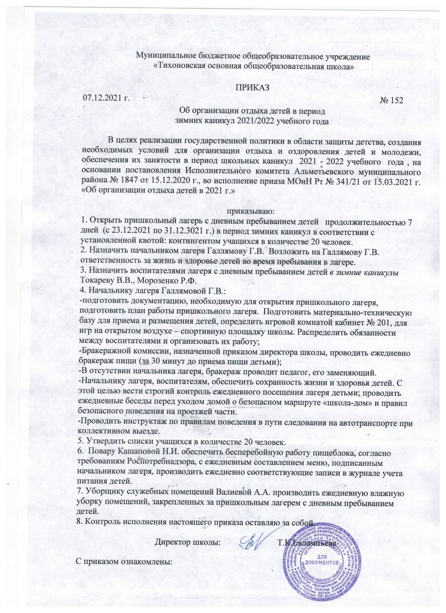 Муниципальное бюджетное общеобразовательное учреждение "Тихоновская основная общеобразовательная школа" Альметьевского муниципального района Республики Татарстан