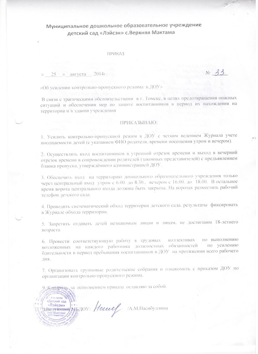 Приказ об усилении контрольно-пропускного режима