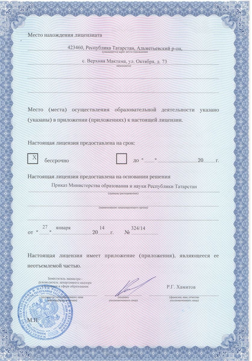 Адрес: 423440, Республика Татарстан, Альметьевский район, с. Верхняя Мактама, ул. Октября, д. 73