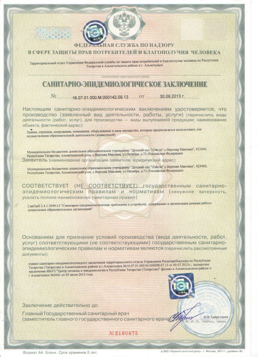 Санитарно-эпидемиологическое заключение