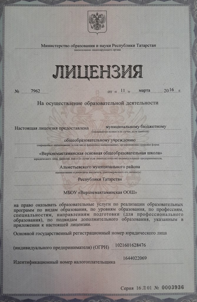 Муниципальное бюджетное общеобразовательное учреждение "Верхнемактаминская основная общеобразовательная школа"Альметьевского муниципального района Республики Татарстан