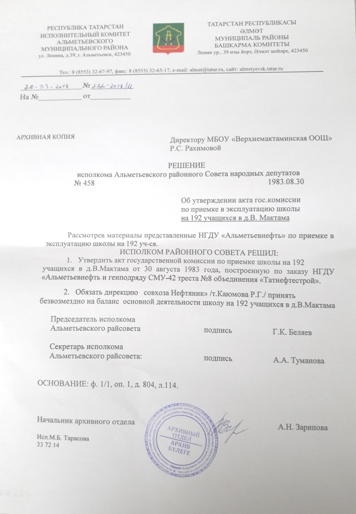 Адрес: 423460, РТ, Альметьевский район, с. Верхняя Мактама, ул. Октября, д. 57