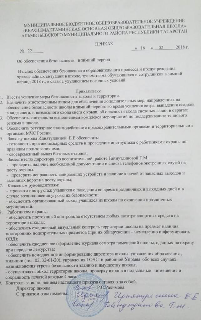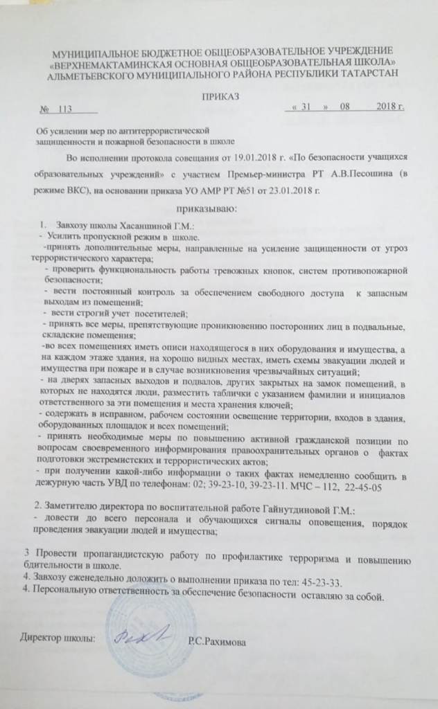 Приказ об усилении мер по антитеррористической защищенности и безопасности в школе