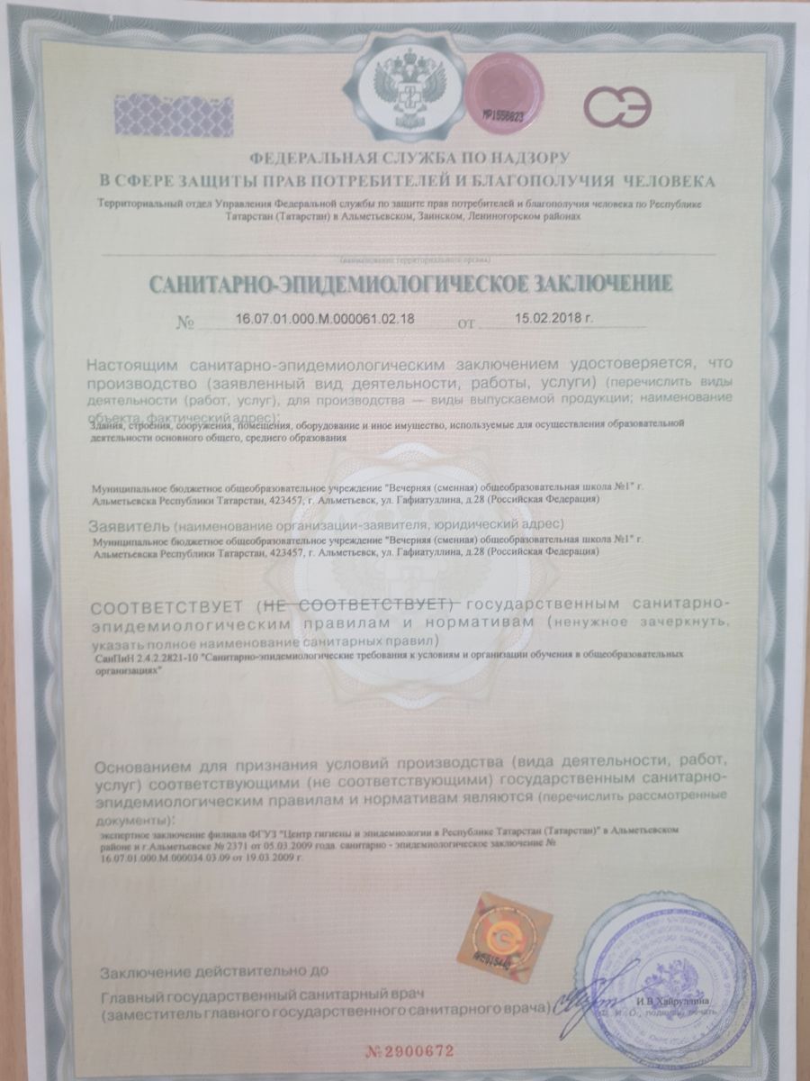 МБОУ «Вечерняя (сменная) общеобразовательная школа №1» Альметьевского муниципального района РТ