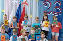 В нашем детском саду педагоги организовали цикл мероприятий: провели с детьми беседы, тематические занятия, читали рассказы об армии, оформили выставки, стенгазеты ко Дню защитника Отечества. Воспитанники подробно узнали о том, кто такие защитники Отечества, о разных родах войск, о военных профессиях и продемонстрировали практические навыки на музыкально - спортивных праздниках, которые прошли в детском саду. На празднике участвовали не только мальчишки, но и девчонки проявляли смекалку и ловкость.