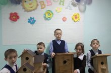 В нашей школе ежегодно конкурс скворечников проводится в рамках Международного дня птиц. Конкурс проводится целью воспитания у детей любви к родной природе, навыков бережного и ответственного отношения к ее обитателям. В этом году участвовали 14 учащихся. Первое место занял ученик 1 класса Богатырев С., который вместе с отцом сделали оригинальный скворечник.