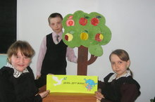 Учащиеся 5 класса на "продленке" (рук.Зубарькова Т.В.) провели мастер-класс по изготовлению "Дерева дружбы" для начальных классов. Каждый плод на дереве (яблоко) был изготовлен в различной технике декоративно-прикладного искусства (пластилин, бумага, опилки, квиллинг, изонить и т.д) и содержал один из "законов дружбы". Ребята с удовольствием приняли участие в совместной практической работе, где каждый мог изготовить яблоко, придумать свой "закон дружбы", зачитать его и прикрепить к дереву.