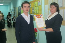 Победитель районного тура олимпиады по географии ученик 11 класса Давлетшин Нияз (преподаватель Валиуллин И.Г.) с 14 по 16 января принимал участие в региональной олимпиаде по географии. Организаторы олимпиады отметили хорошие знания ученика по предмету, наградив Почетной грамотой. Молодец!
