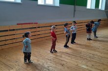 Балалар бакчасы балалары физкультура дәресләрен мәктәпнең спорт залында уткәрәләр. Аларга бу дәресләр бик ошый.
