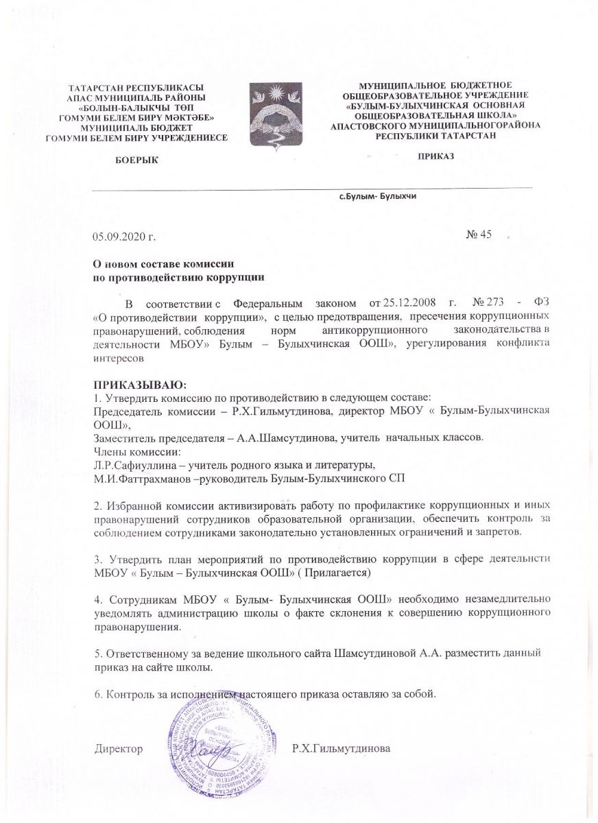 Приказ по противодействию коррупции