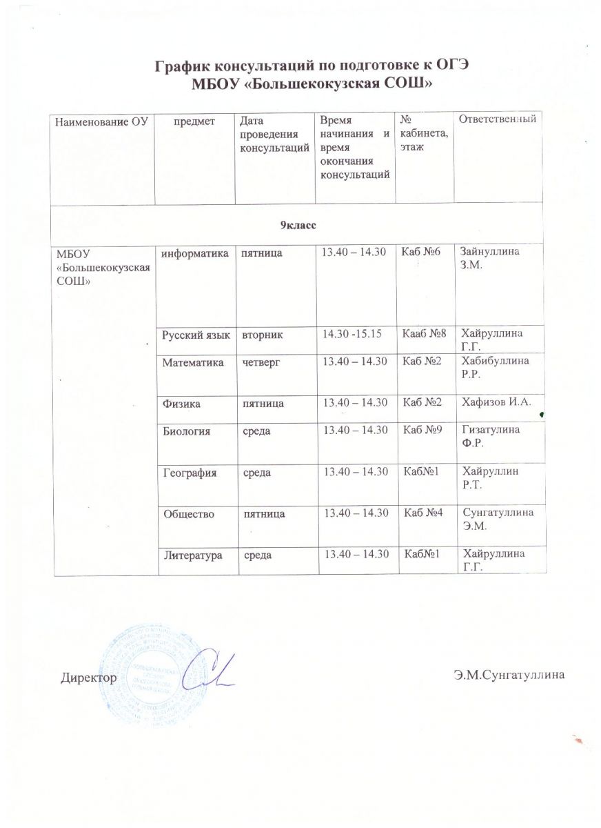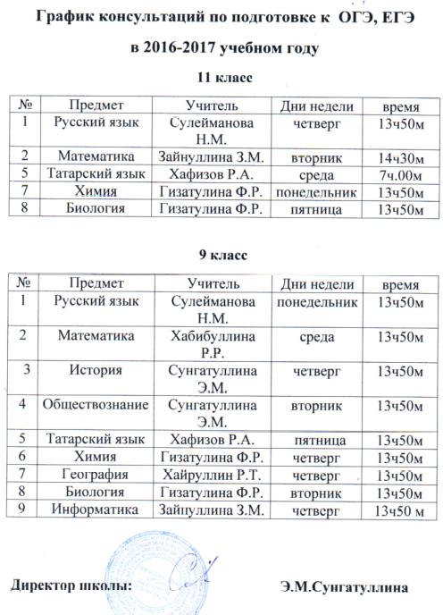 График консультации ОГЭ - 2019