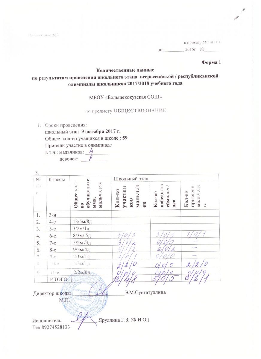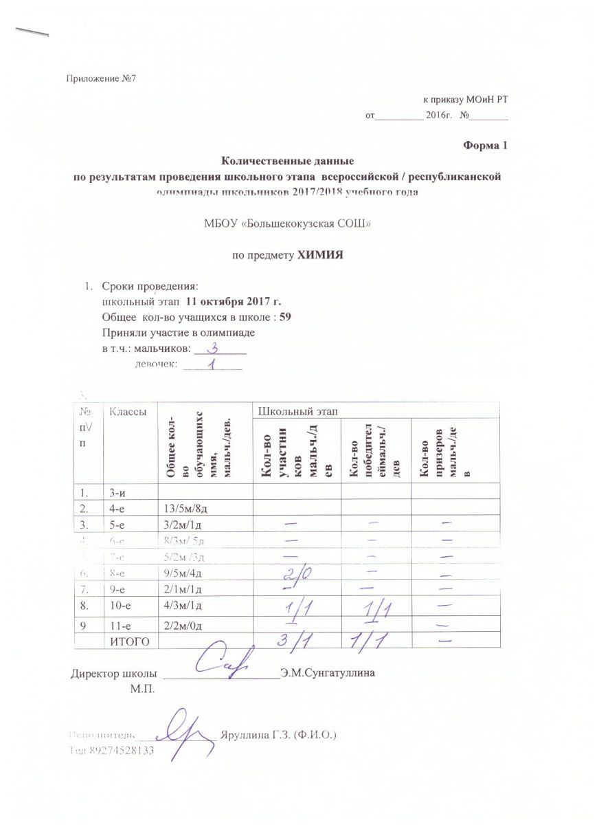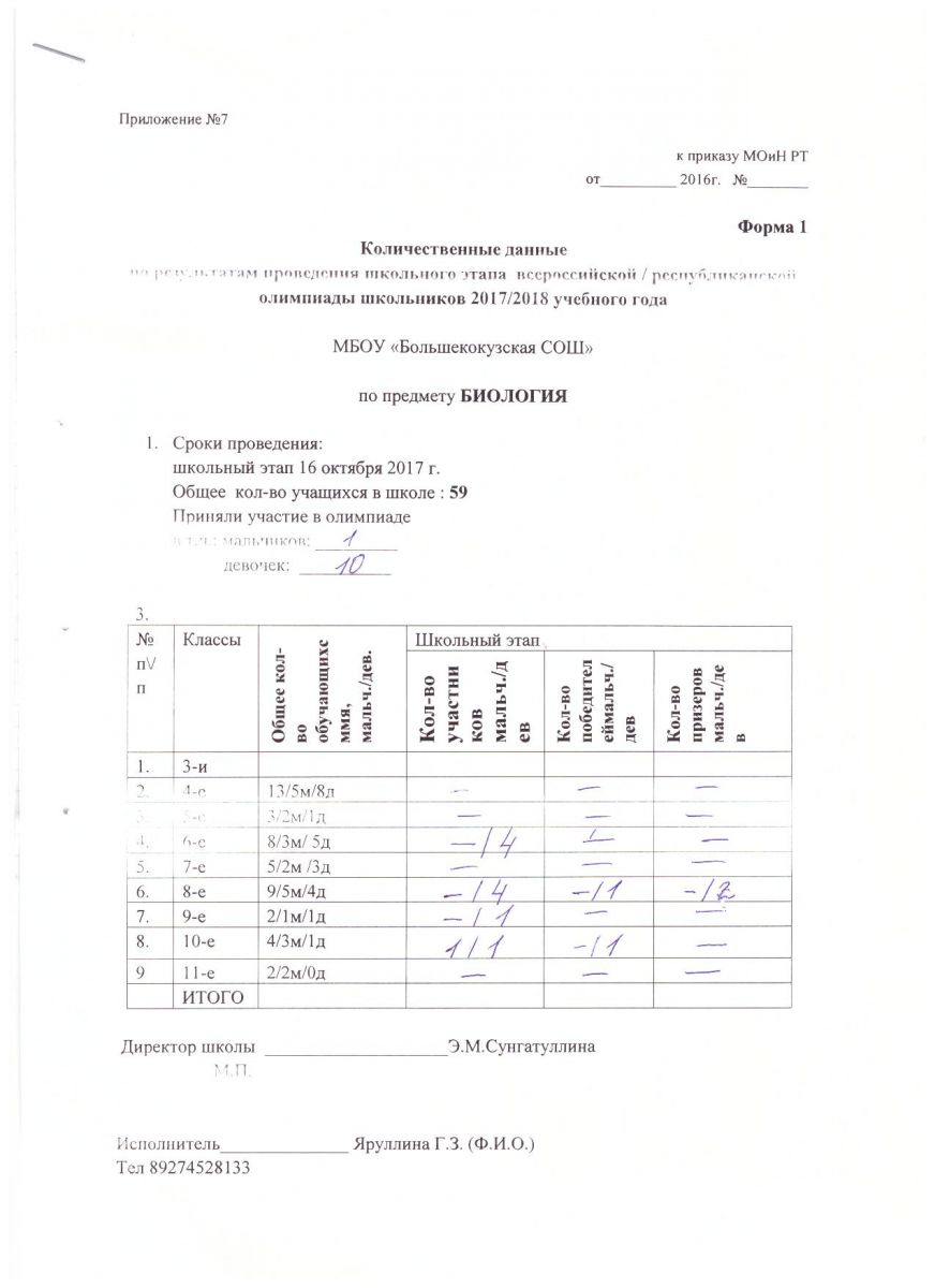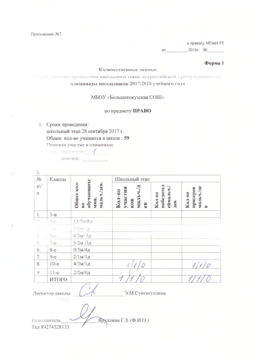 Из 44 участников муниципального этапа Всероссийской и республиканской олимпиады 19 учащихся (43%) показали теоретическую и практическую подготовленность. 6 учащихся по 5 предметам (по обществознанию, по русской литературе для учащихся школ родным (с нерусским) языком обучения, по татарскому языку для учащихся школ, с татарским языком обучения, по татарскому языку для учащихся школ с русским языком обучения и по татарской литературе для учащихся школ с русским языком обучения) завоевали статус участника республиканского этапа Всероссийской и республиканской олимпиады школьников. Поздравляем их!спи