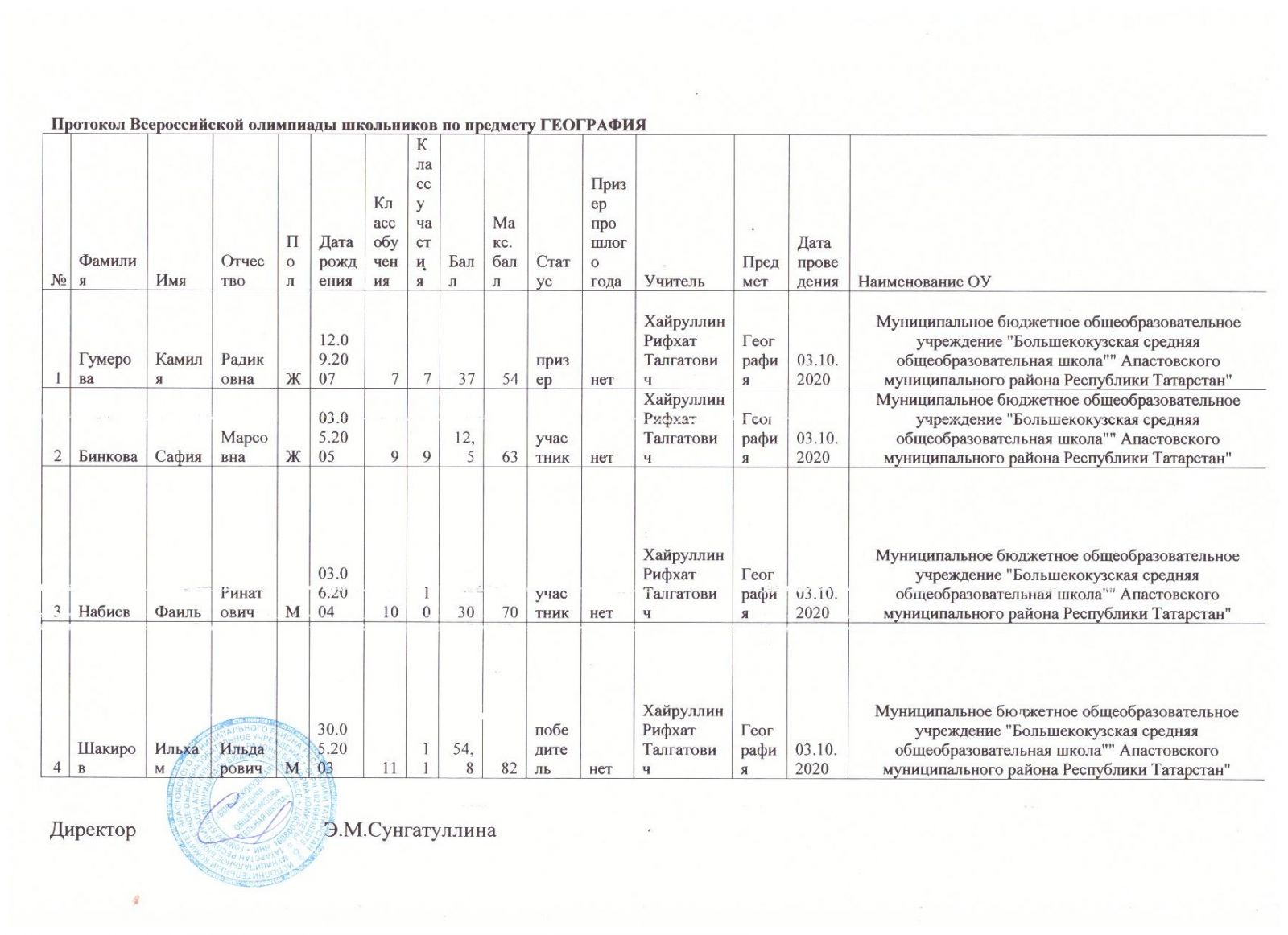 Инструкция о заполнении протоколов олимпиад
