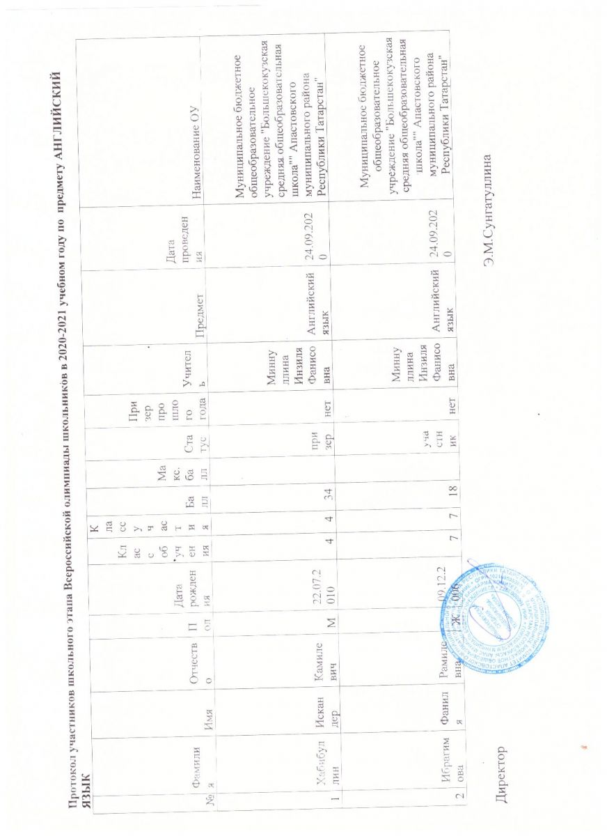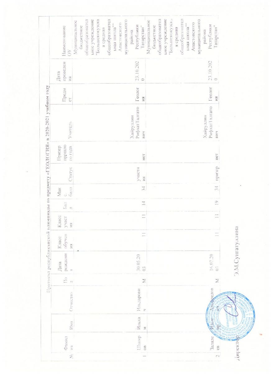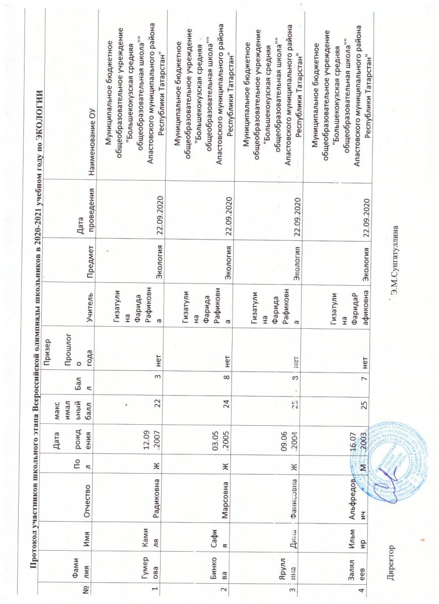 Протокол республиканской олимпиады по родной (татарской)литературе с родным языком обучения