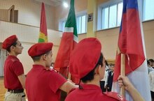 Утро понедельника в нашей школе началось традиционно с выноса флагов и исполнения гимнов Российской Федерации и Республики Татарстан.