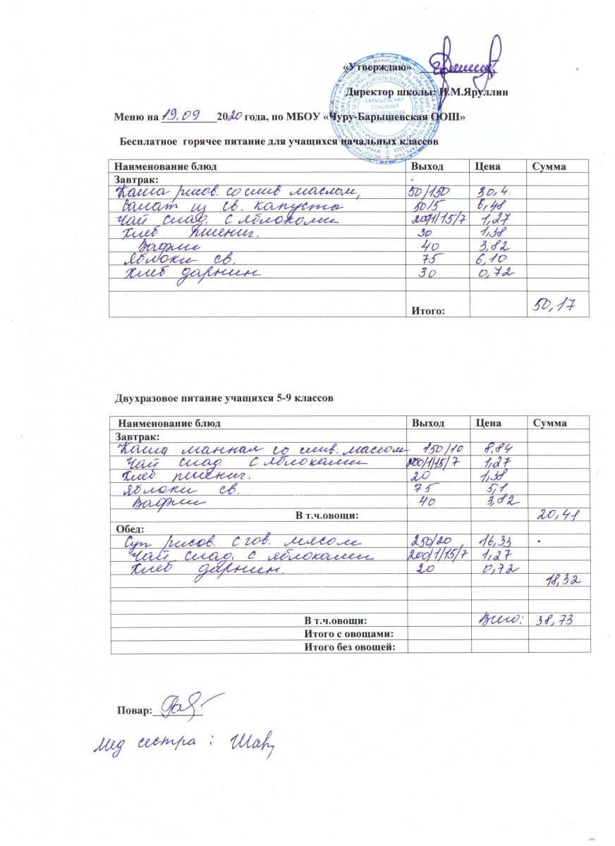 Примерное двухнедельное меню школы