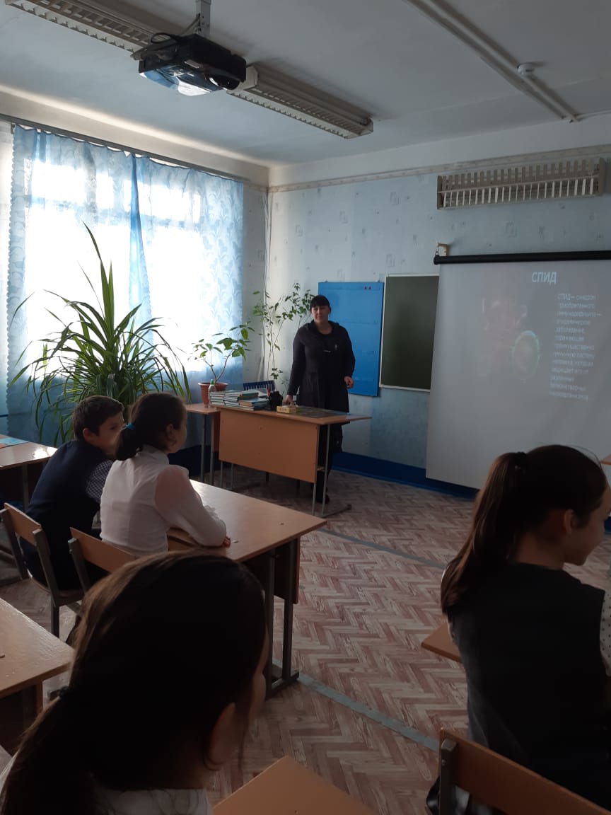 В 5-9 классах были проведены классные часы и информационные беседы. Педагоги школы показывали презентации, на которых была затронуты проблемы СПИДа в современном обществе -