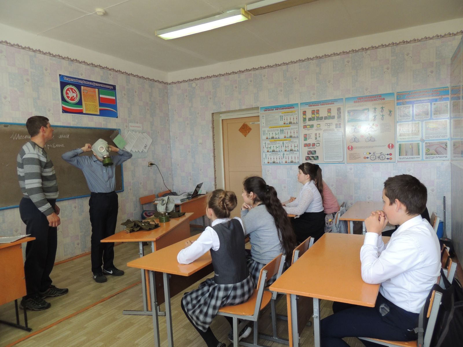 17 мая 2017 года в 6 классе прошел открытый урок по ОБЖ. Учитель ОБЖ Нургалиев Р.Ш. ещё раз пояснил учащимся как обращаться с противогазам и при каких ЧС его применяют.