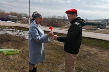 Юнармейцы школы присоединились к акции,поздравили с наступающим праздником и вручили Красные гвоздики.