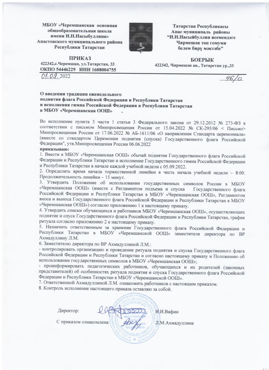 МБОУ «Черемшанская основная общеобразовательная школа имени И.Н.Насыбуллина» Апастовского муниципального района РТ / ТР Апас муниципаль районы "Ислам Насыйбуллин исемендәге Чирмешән төп гомуми белем бирү мәктәбе" ГБМБУ