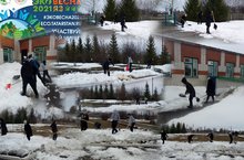 Мәктәбебездә язгы өмәләр башланып китте. Мәктәп тирәсен кардан чистартабыз.