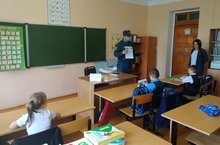 1 нче сыйныф укучылары Урта Балтай янгын сүндерү бүлеге җитәкчесе Абубакеров Алмаз белән очраштылар