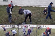 На территории школы были посажены деревья, на пришкольном участке проведена уборка.