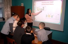 В рамках акции «Час кода в России» сегодня в нашей школе прошёл тематический урок по информатики. Учительница информатики Фания Фаридовна рассказала историю происхождения компьютера и о сегодняшних возможностях информационных технологий. Урок закончился игрой-викториной решением ребусов.