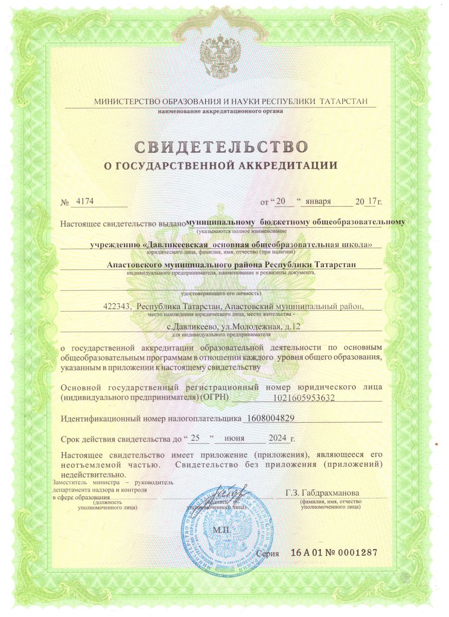 Муниципальное бюджетное общеобразовательное учреждение «Давликеевская основная общеобразовательная школа» Апастовского муниципального района Республики Татарстан