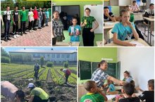 Продолжился день трудовым десантом. Ребята поливали и пропалывали клумбы, убирали мусор на территории школы. При этом обязательно соблюдались нормы безопасности. -