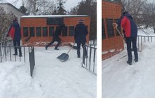 10 февраля 2023 года тимуровцы из 7 класса дружно очистили памятник от снега.