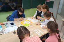 Учитель начальных классов Салаватуллина Г.З. с учащимися младших классов ведет кружок "Очумелые ручки"