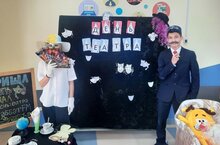 Педагогический состав совместно со школьным активом оформили фотозону для создания атмосферы праздника театра.