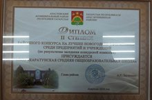 Наша Каратунская средняя общеобразовательная школа была награждена дипломом 2-ой степени за лучшее новогоднее оформление среди предприятий и учреждений!