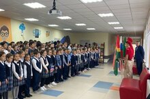 Полноценная новая учебная неделя новой учебной четверти в нашей школе стартовала с торжественной церемонии поднятия флага России и Татарстана, а также исполнения гимнов.