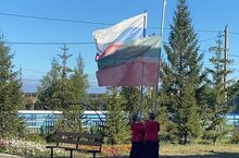 Утренняя линейка в Каратунской школе с исполнением Гимна и поднятием Российского и Татарстанского флагов.