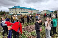 Обучающиеся 2-4 классов во главе с классными руководителями расчистили территорию школы, а старшеклассники работали на пришкольном огороде - собирали урожай 2022.