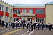 1 сентября школа в тридцатый раз распахнула свои двери для обучающихся. К юбилейному году утеплен фасад здания Храма знаний./ 1 сентябрь көнне мәктәп үзенең укучылары өчен утызынчы тапкыр ишекләрен ача. Узенең юбилее елында белем йорты балаларны тышкы яктан җылытылып тышланган хәлдә каршылый.