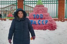 Сегодня учителя школы участвовали на конкурсе снежных фигур , посвященных к 100 - летию ТАССР и 75 - летию Вов на территории районного отдела образования.