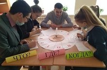9-10 сыйныфлар арасында тарих укытучысы Гайнуллина Гүзәл .Харун кызы Нәрсә?, Кайда?, Кайчан? уены уткәрде.