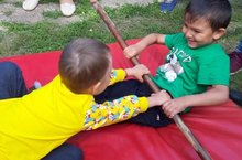 Нәниләребез Сабан туенда көч сынаштылар, уйнадылар, биеделәр. Рәхәтләнеп ял иттеләр.