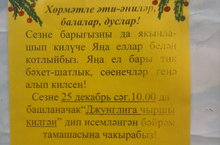Бүген бакчабызда гөрләп Яңа ел бәйрәме узды. Балалар җырладылар, шигырьләр сөйләделәр, биеделәр. Кыш бабай белән уеннар уйнадылар.
