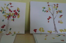 Аппликация из цветной бумаги,осенних листьев и семечек арбуза.