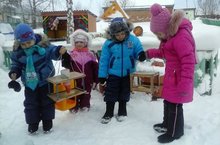 Кышын кошларга азык табу кыенлашты. Балалар әти - әниләр ярдәме белән кошларга җимлек ясап куйдылар, һәр көн аларга җим бирәләр.