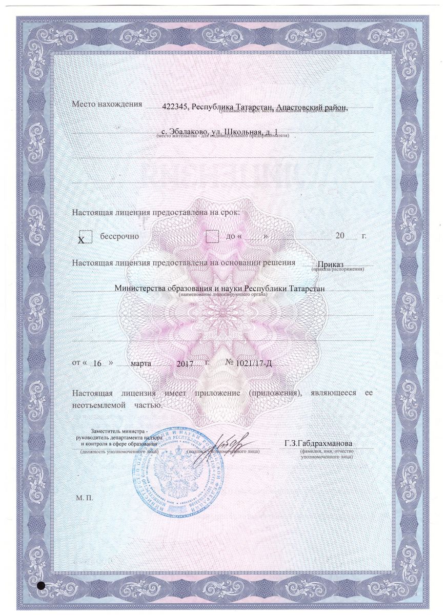 | Адрес: | 422345, Республика Татарстан, Апастовский район, дер. Эбалаково, ул. Школьная, д. 1 |